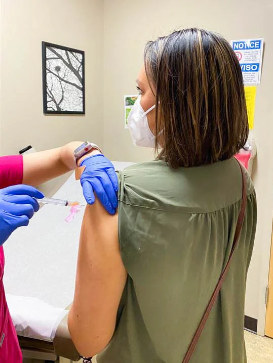 Sara Santiago, Chicas Family Engagement Coordinator, gets vaccinated.